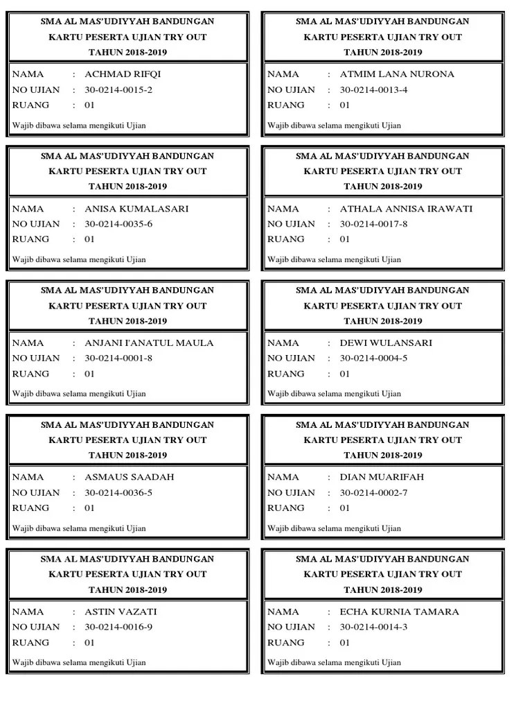 2011 / 2012 kartu peserta… Pencetakan kartu peserta ujian akhir. 2011 / 2012 kartu peserta ujian sdn 04 sukabanjar kec. Pada tutorial membuat kartu peserta ujian sekolah (uts/uas) dengan mail merge kali ini penulis berusaha menjelaskannya melalui contoh kasus . Kartu peserta ujian sdn 04 sukabanjar kec. Merujuk kalender pendidikan universitas telkom tahun akademik 2o2o/2021 tentang penyelenggaraan ujian akhir semester (uas) pada tanggal 11 .