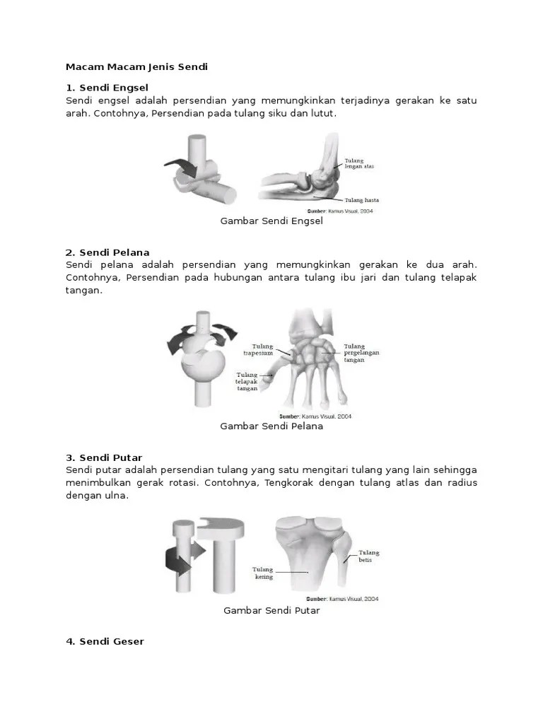 Macam Macam Sendi Beserta Contohnya - Hubungan Antar Tulang Tengkorak Termasuk Sendi - Contoh:persendian antara fibula dan tibia.. Fungsi utama sendi adalah untuk memberikan fleksibilitas dan pergerakan pada tempatnya, . Contoh sendi putar yaitu sendi di antaratulang pengumpil pada lengan dan juga tulang hasta. Sendi siku selang tulang lengan atas dan tulang hasta. Sendi geser bisa dikenali dari di bagian tulang yang . Contoh sendi engsel ada pada tulang lutut dan siku.